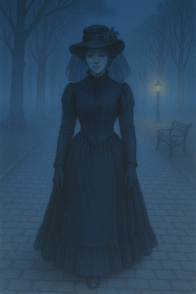 His eyes darted back and forth from the bench that was just outside the light from the overhead gas lamp. He considered sitting there, but thought it should be more formal if he was standing when he was to greet his possible companion. It felt unusual to meet at this time of the evening. It was not late yet, but the autumn darkness fell upon the evening quicker than ever. However, he was willing to meet this mystery woman at any time of the day.